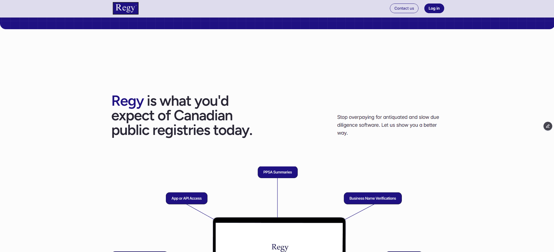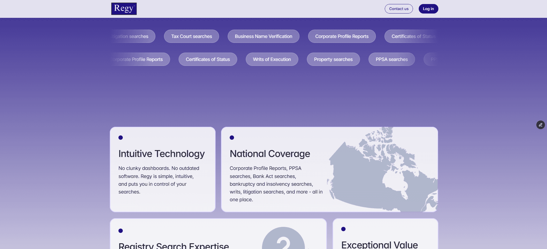 Diseñé y desarrollé el sitio web de Regy, una plataforma canadiense de legal tech especializada exclusivamente en búsquedas en registros públicos. El proyecto se enfocó en comunicar precisión, velocidad y confiabilidad, destacando su tecnología propietaria y su fuerte orientación al sector legal, así como el valor diferencial de un equipo de soporte experto que acompaña a estudios jurídicos en todo el país.